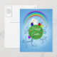Happy Easter Colorful Planet & Rainbow Cute Bunny Holiday Postcard