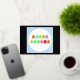 Colourful Easter eggs Happy Easter text on white background with blue stripes border design.
