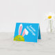 Cute blue Easter Bunny post card with real pickleball. Custom text front and inside.