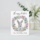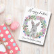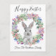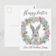 happy easter cute bunny and floral wreath family postcard
