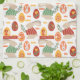 Happy Easter Cute Bunny Eggs Spring Flowers Tea Towel