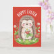 Happy Easter Cute Hedgehog Holding Strawberry Card