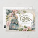 Happy Easter. Watercolor Cute Old-Fashioned Bunny with Flowers design Easter Postcard with personalised family name. Matching cards, favours and gifts available in the Holidays / Easter Category of our store.