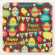 Happy Easter day- Pattern Bunny And Eggs Easter Square Paper Coaster