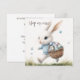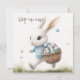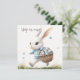 Happy easter, easter bunny walking with eggs invitation