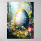 Great Easter Poster with a big easter egg and cute animals like an easter bunny or rabbit. Magical Fantasy Forest Floral Art with flowers and adorable animals. Easter egg hunt in the fantasy woods.