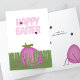Send sweet springtime smiles with this playful Happy Easter greeting card! Soft pink lettering sits above a peaceful scene of a pink Easter egg hiding in fresh green grass while a carefree grasshopper keeps watch and tiny ladybugs light on a Happy Easter greeting. It’s a lighthearted design that captures the calm, fun feeling of spring.