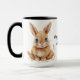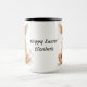 Two very cute easter bunnies with the words "Happy Easter Elizabeth" which can be edited by you so you can change the name or put a different phrase on it to suit you. The two bunnies are also editable, meaning you can move them or transfer them to a different type of drinkware. Generative content.
