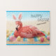 Happy Easter from Florida Flamingo Bunny on Beach Jigsaw Puzzle