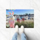 Happy Easter Hilton Head style! The design on this beautiful Easter doormat features an original photograph of the Harbour Town marina at Sea Pines with its luxury yachts, upscale condos, and signature red rocking chairs. A special visit by Easter Bunny dressed in pastel pink holding a decorated Easter basket completes the festive scene. The text reads "Happy Easter from Hilton Head Island." The doormat is the perfect addition to your Easter front porch, lanai, sunroom, mudroom, laundry room, or garage! Please browse our complete collection of Hilton Head and Lowcountry Easter cards, gifts, and home decor. Special design requests accepted. (Photography and Creative Design by Glenda Motsavage)