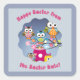 The main colours are grey, light blue, and pink. The main elements are the Easter Owls. This year the Easter Owls are helping the Easter Bunny deliver candy.