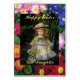 Pretty little doll in Easter outfit with eggs, basket and primrose border and the text Happy Easter Goddaughter.