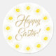 Happy Easter gold script cute daisy floral frame Classic Round Sticker
