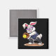 Happy easter holiday bunny playing softball magnet