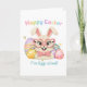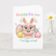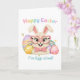 Celebrate Easter with this adorable design featuring a cute bunny in pink heart glasses and a bow tie, surrounded by colourful decorated eggs and tiny butterflies. The playful phrase "Happy Easter I'm Egg-cited!" adds a touch of humour, making it perfect for spreading joy.