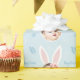 Add a cute touch to your Easter holiday gift with this adorable personalised pattern of bunny ears with a photo of your little boy or girl. Add custom text, such as Happy Easter and your young kid's name. The background is a pretty complementary pastel blue.