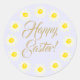 Happy Easter yellow and white daisy flowers floral border personalised custom script text cheerful cute stickers, labels, envelope seals, gift tags.
