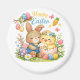 Celebrate the season with this adorable Easter magnet featuring a cheerful bunny and chick surrounded by colourful eggs, flowers, and carrots. The playful “Happy Easter” design adds a festive touch to your fridge, office, or any magnetic surface. Perfect as a springtime gift, party favour, or holiday decoration