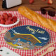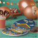 Cute nativity scene for Happy Easter with a night sky and a baby in the manger. Paper Plate.