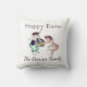 This custom throw pillow features a vintage Easter image along with the text "Happy Easter". You can personalise this pillow with your family's last name by using the personalised template.