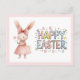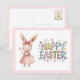 Cute pink watercolor postcard for Easter, with adorable pink bunny!