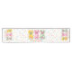 Fun, colourful table runner featuring three bunnies and pastel polka dots, for Easter festivities and events. Images are editable so, for instance, if you didn't want the three bunnies in the middle, you could clear that image.