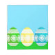 Beautiful and cute Easter design of multi-coloured, decorated green, blue and yellow Easter eggs motif against a powder blue background, reminiscent of a clear, blue Spring sky.