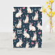 This card features a repeating pattern of stylized white rabbits on a deep navy background, creating a cozy nighttime contrast that makes each figure stand out 🐰. The rabbits have bright blue eyes with soft pink touches on their noses and inner ears, and their gentle smiles feel like they’re sharing a private joke with someone close. Some are shown waving, others winking, and a few lean toward one another as if in a friendly nuzzle, adding a hint of romance or close companionship. Small silver-white dots are scattered around like tiny sparkles, and little bows in pale pink and light blue add a sweet, tender accent 🌷. The lighting looks softly diffused, giving the rabbits a plush, glowing texture without harsh shadows. “Happy Easter” appears integrated into the design, placed so it sits comfortably among the figures in a light, silvery white tone. Around the lettering, the navy space is dotted with more tiny sparkles and a couple of bows tucked between rabbit ears.