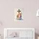 Happy Easter with this cute bunny, easter eggs and a christian cross for the resurrection of jesus christ.