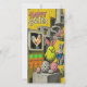 Happy Easter Retro Card With Chick Wearing Bunny Ears, Chocolate Bunny, Neon Carrots and Speckled Eggs