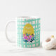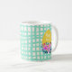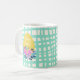 Happy Easter floral egg. Cute floral orange egg with retro plaid pattern background. Retro rustic Easter mug