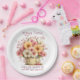 Happy Easter Spring Pink and Yellow Flowers Paper Plate