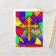 Pretty hand drawn cross with a stained glass background Easter postcard.