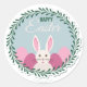 This cute white bunny sticker is shown with some Easter eggs and has a foliage frame with the words "happy Easter". (<a href='http://www.freepik.com/free-vector/floral-easter-egg-stickers-set_1045402.htm'>Designed by Freepik</a>). <br/><br/>The card is easy to customise with your wording, font, font colour and choice of six paper types.<br/><br/>Not exactly what you're looking for? All our products can be custom designed to meet your needs at no extra charge.<br/><br/>Simply contact us at askcottonlamb@gmail.com<br/><br/>Coordinating products available: