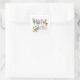 Bright “Happy Easter” sticker with colorful letters and sweet spring flowers — perfect for cards, gifts, and seasonal decorating!