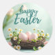 Happy Easter sticker with eggs in a nest