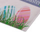 Colourful striped eggs are sitting in green grass on a lavender blush background with a "Spring" banner. Click on "Customise" to add personalised text or to change the background colour; if desired.