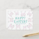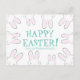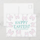 Happy Easter teal pink and white custom text cute bunnies modern fun funny Easter Postcard.