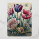 Personalized vintage tulips Easter tulip flowers card featuring elegant botanical floral artwork in blush pink, mauve, red, and purple tones. A refined non-photo floral design perfect for family holiday wishes.