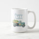 Cute Easter coffee mug! Features a blue green vintage truck with carrots and white flowers in the back. On the side door is a string of carrots and a bunny decoration. "Happy Easter" is in a cute blue typography. This mug will make you smile.