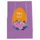Happy Easter floral egg. Cute orange egg with floral watercolor bouquet