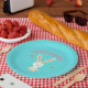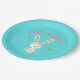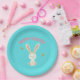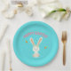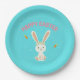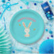Happy Easter white bunny on blue Paper Plate