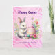 Happy Easter, White Bunny Painting an Easter egg Holiday Card