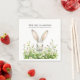 Complete your Easter Brunch & Egg Hunt table setting with these beautifully designed personalised White Bunny Rabbit & Florals paper napkins! Featuring a sweet white bunny nestled among delicate spring wildflowers, this charming watercolor design captures the fresh, uplifting spirit of the season. The soft white petals and cheerful yellow centres add a bright and festive touch to your Easter celebration.