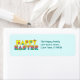 Happy Easter. Cheerful, cute Easter address lables. The word Happy is in a bright cheery yellow, and the word Easter is in an ombre rainbow of colour. Both are overlain with flowers. You can personalise the text in our easy to use template. You can change the background colour if you like, just go to customise. This design is on other fun items in my shop.