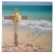 This gorgeous Easter ceramic tile is the perfect addition to your Easter breakfast, brunch, or dinner! The design features a wooden cross with yellow Easter lilies, delicate pink ribbon, and scattered flower petals in the sand with the turquoise ocean in the background. The beautiful script text reads "Happy Easter." The ceramic tile is also a great low-cost gift option for friends, family, co-workers, neighbors, hostess, the elderly, caregivers, teachers, and the perfect addition to any Easter gift basket! Available in two size options. Please browse our complete collection of tropical-themed Easter cards, gifts, and home decor. Special design requests accepted.