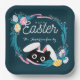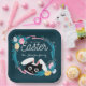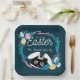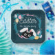 Happy Easter Wreath, Black Cat with bunny ears Paper Plate