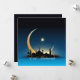 Happy Eid Mubarak Cresent Star Mosque black Blue Holiday Card
