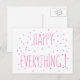 NewParkLane - Postcard, with fun quote 'happy everything' in pink, in modern typography, with sparkling stars.