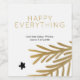Happy Everything Gold Foliage Personalised bottle labels from Ricaso - perfect holiday table decoration accessories or ideal for gifting - add your own text to this white, mustard gold and black label - from the Happy Everything collection - designed with a beautiful winter foliage detail and small star